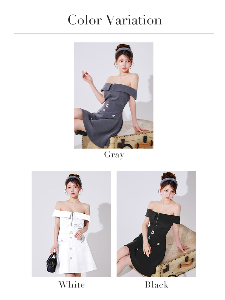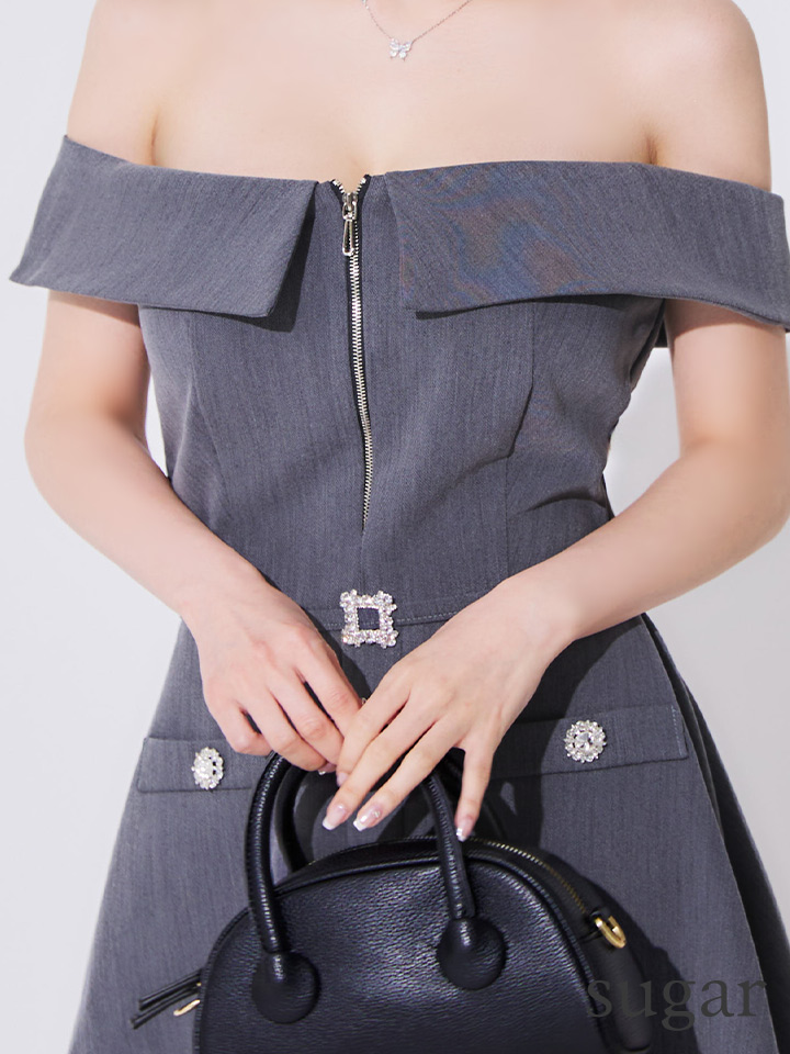 - > XSサイズあり【ANDY/アンディ】オフショルダー/ フロントジップ/ ベルト/ ビジューボタン/ ストレッチ/ フレア/ ミニドレス/ キャバドレス[OF05]