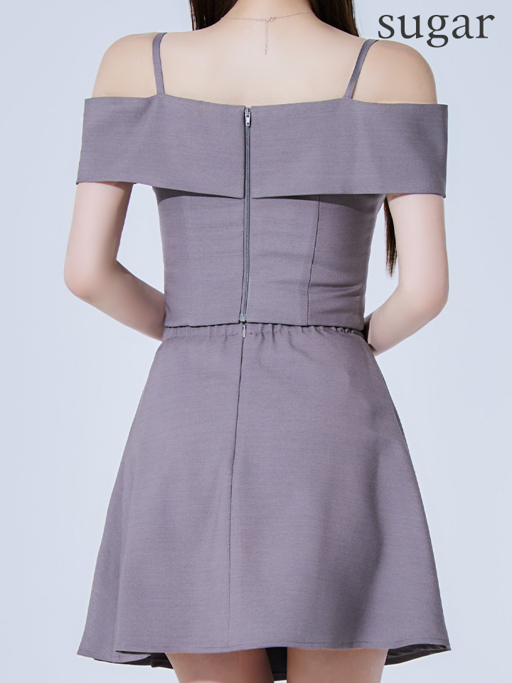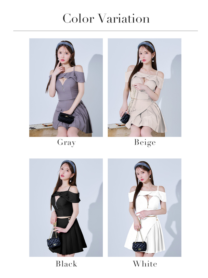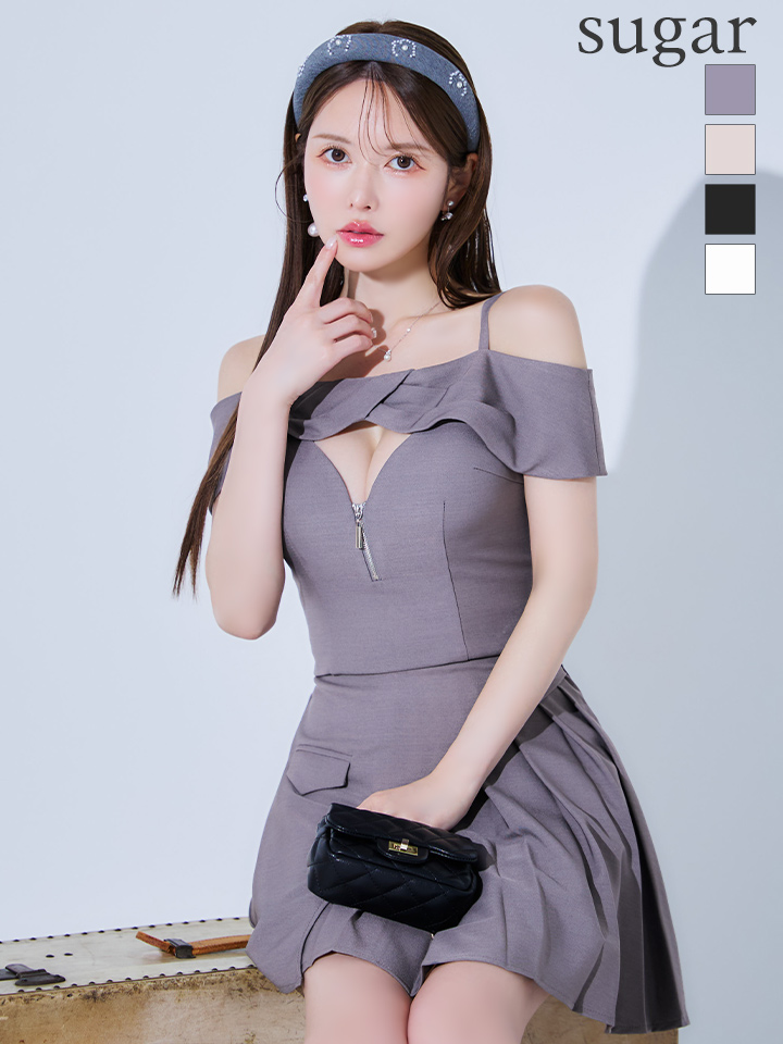 XSサイズあり【ANDY/アンディ】オフショル/ キャミソール/ バストジップ/ プリーツ/ アシンメトリー/ フレア/ セットアップ/ ミニドレス/ キャバドレス[OF05] [ON2914-BE-S250628]