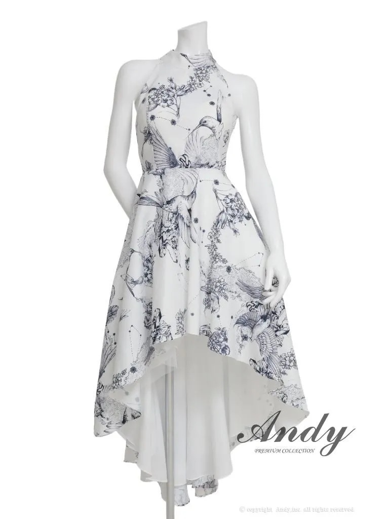 【ANDY/アンディ】テールカット/ バックオープン/ パニエ付き/ アメスリ/ クラシカルプリント/ シフォン/ フレア/ ミディアムドレス/ ワンピース/ キャバドレス[OF05]