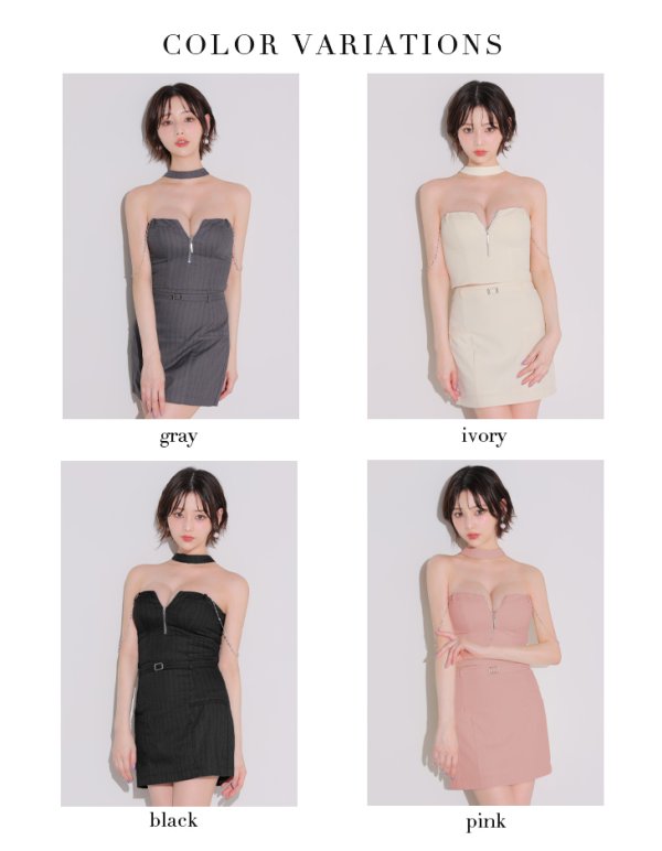 - > XSサイズあり【Glossy/グロッシー】チョーカーデザイン/ バストジップ/ セットアップ/ タイト/ ミニドレス/ キャバドレス[OF08]