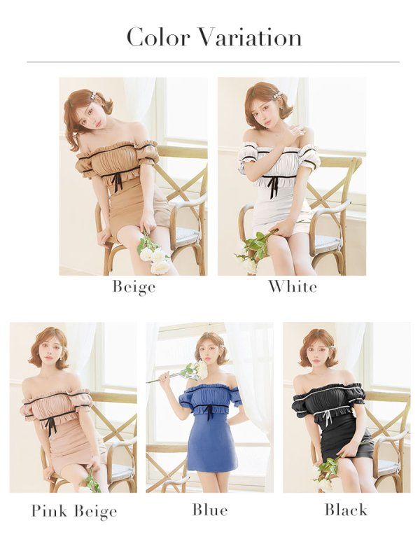 - > XSサイズあり【ANGEL R/エンジェルアール】オフショルダー/ ギャザー/ リボン/ Aライン/ バイカラー/ フレア/ マイクロミニドレス/ キャバドレス[OF2]