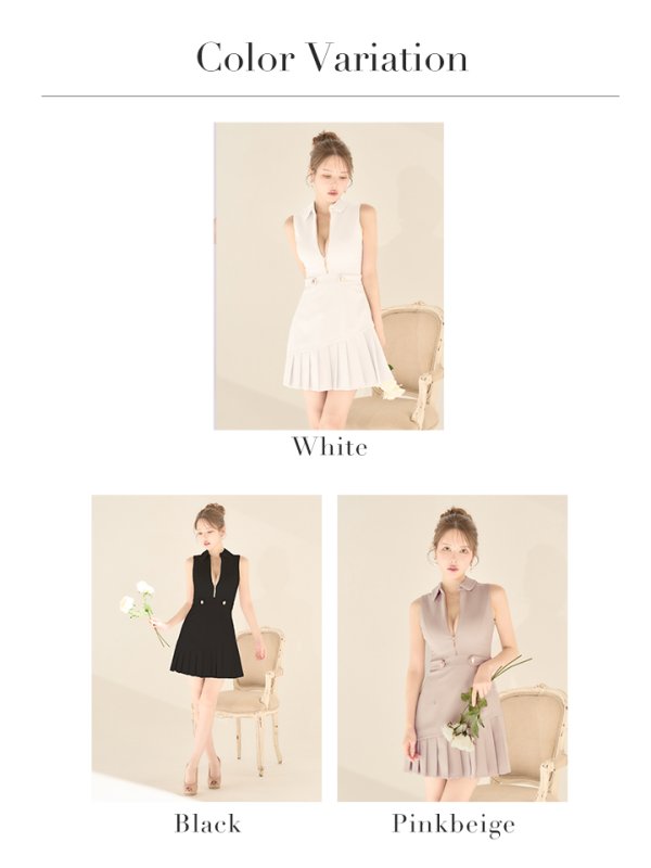 - > XSサイズあり【ANDY/アンディ】襟付き/ ノースリーブ/ フロントジップ/ プリーツ/ フレア/ ワンピース/ ミニドレス/ キャバドレス[OF05]