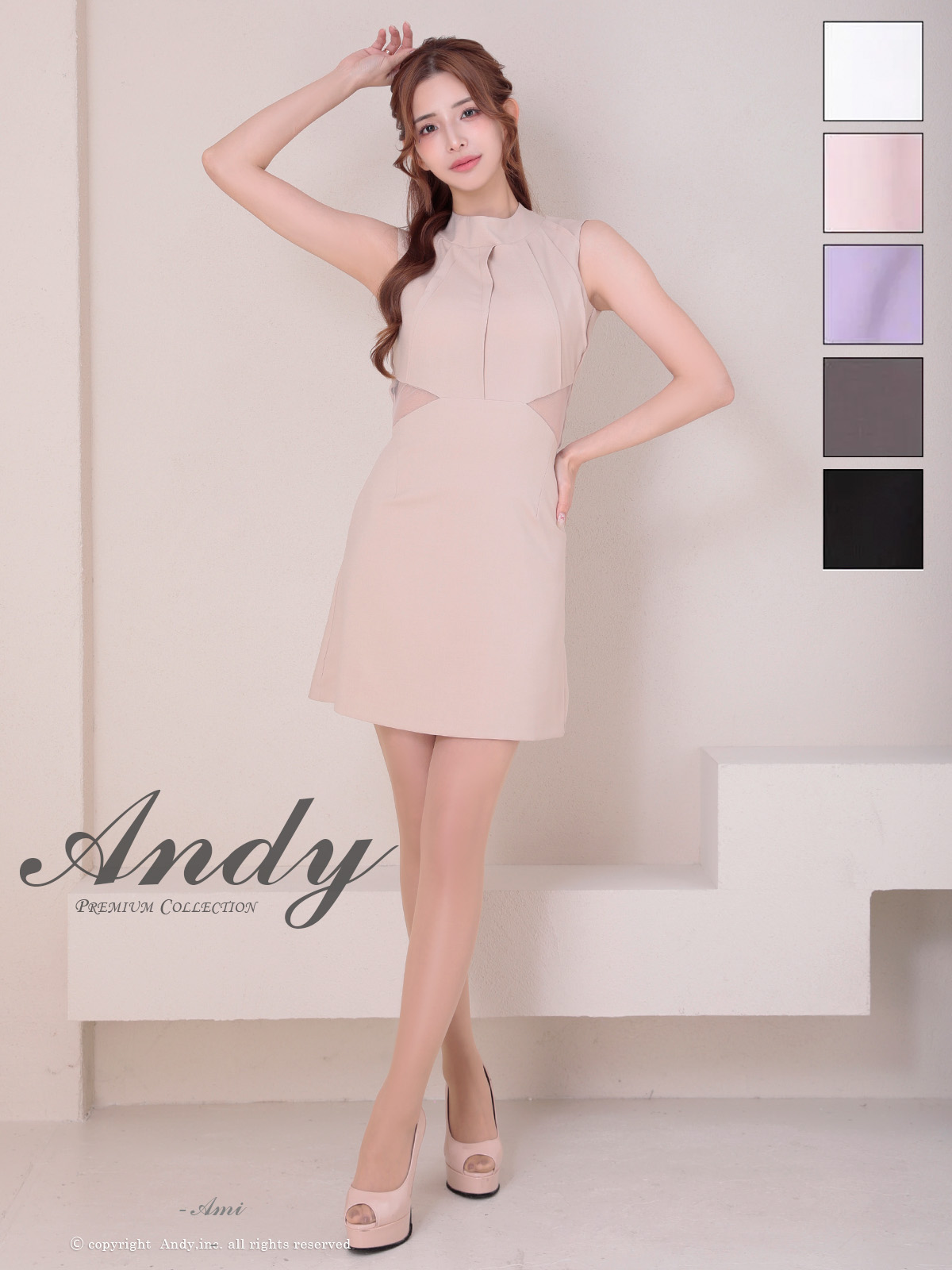 XSサイズあり【ANDY/アンディ】シンプル/ ハイネック/ タック/ ノースリーブ/ ウエストシアー/ バックリボン/ フレア/ ミニドレス/ キャバドレス[OF05] [ON2937-BE-2507]