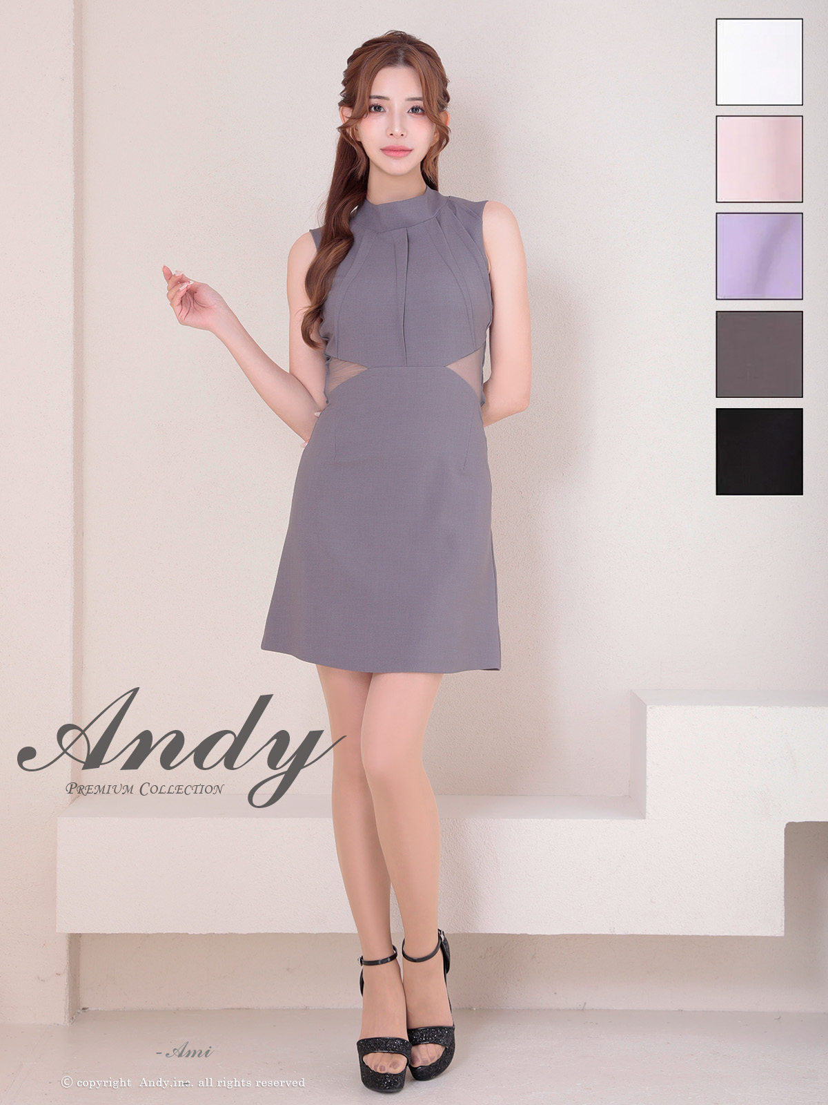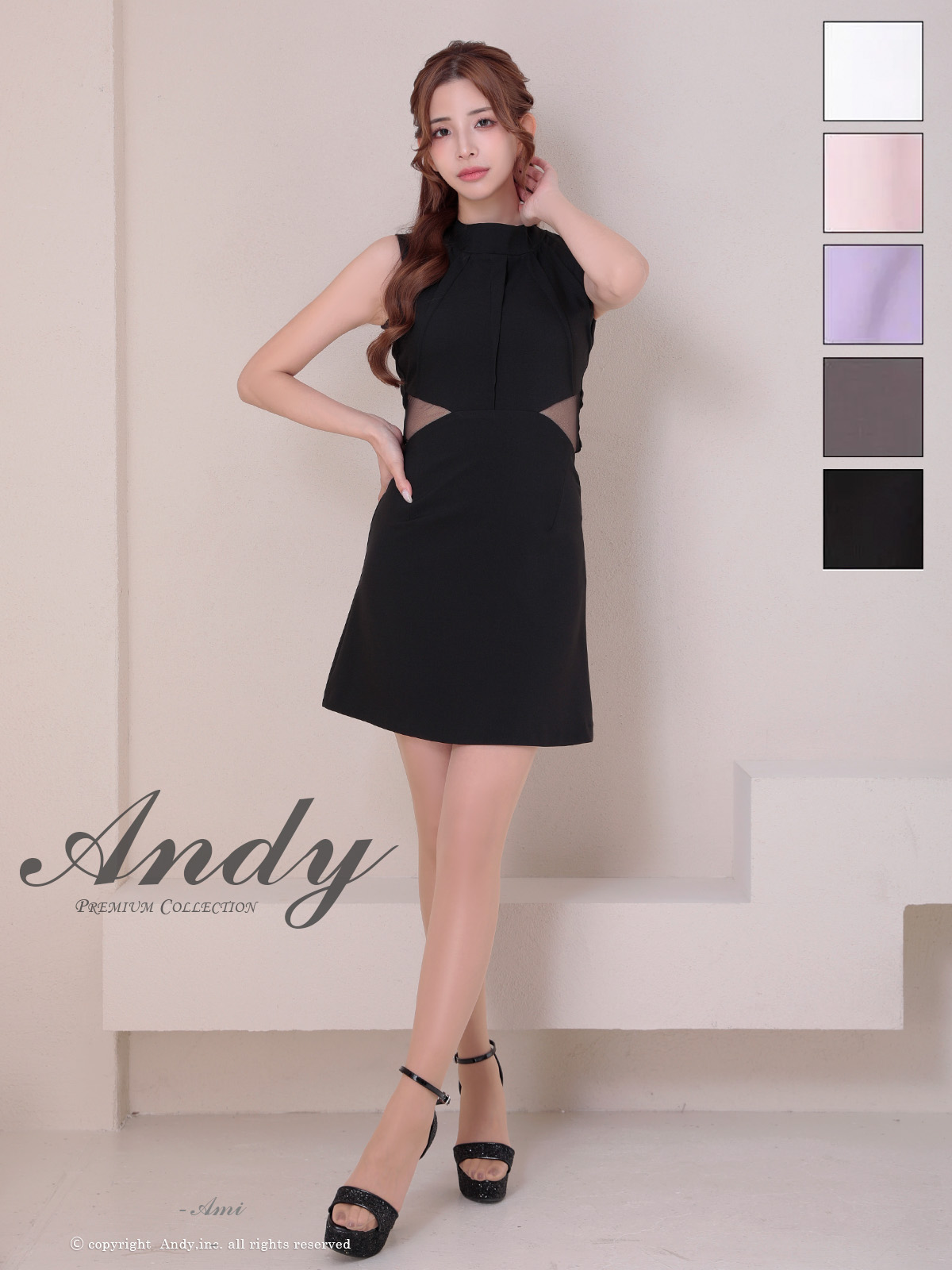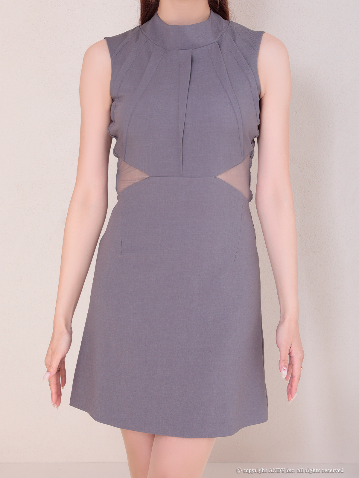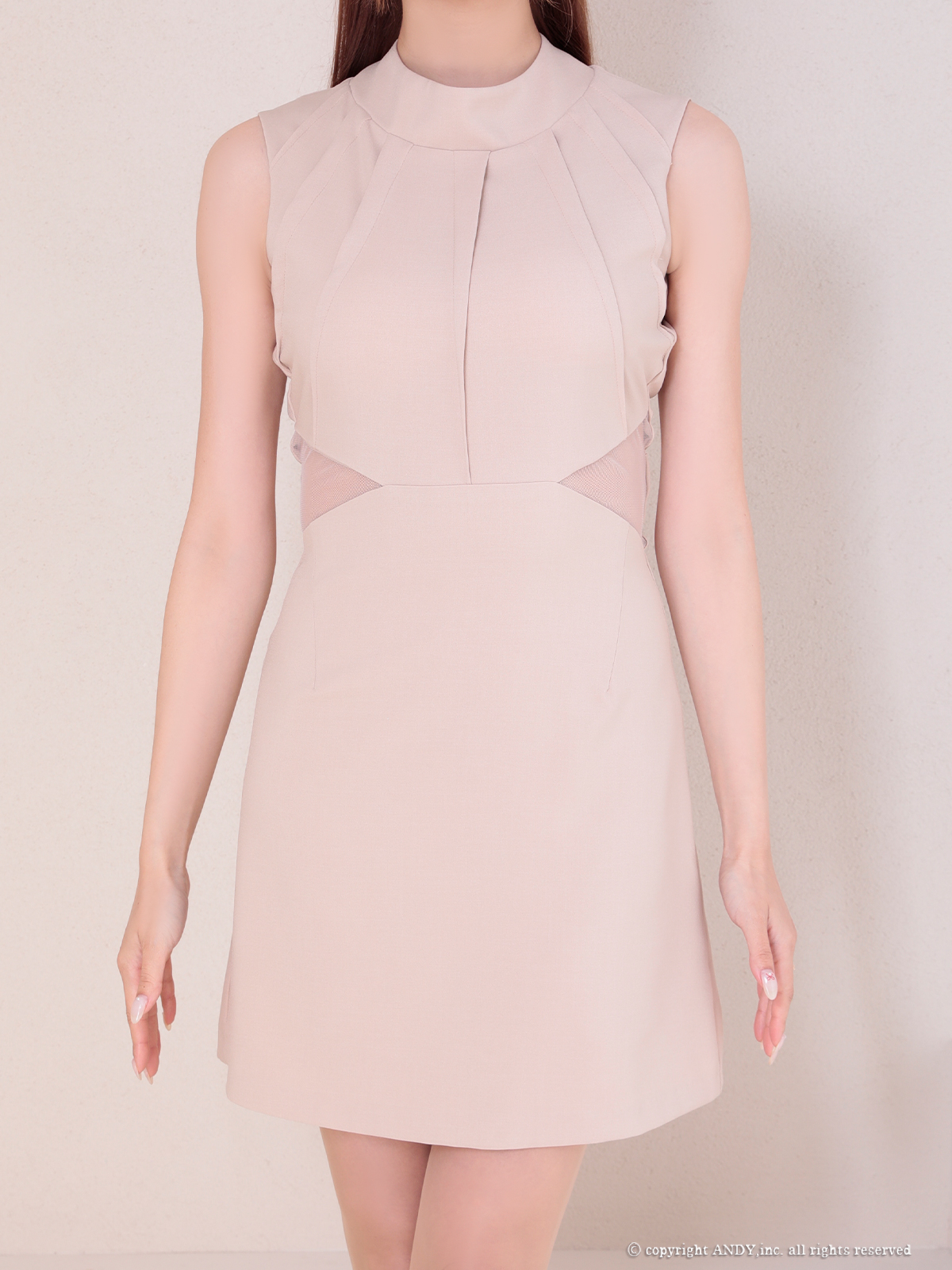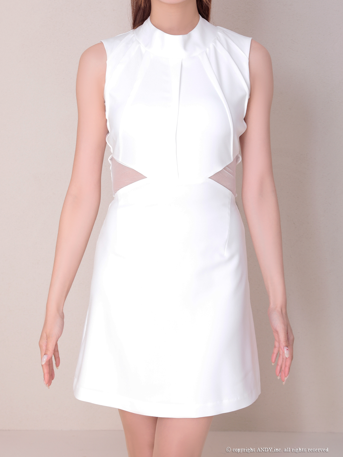 - > XSサイズあり【ANDY/アンディ】シンプル/ ハイネック/ タック/ ノースリーブ/ ウエストシアー/ バックリボン/ フレア/ ミニドレス/ キャバドレス[OF05]