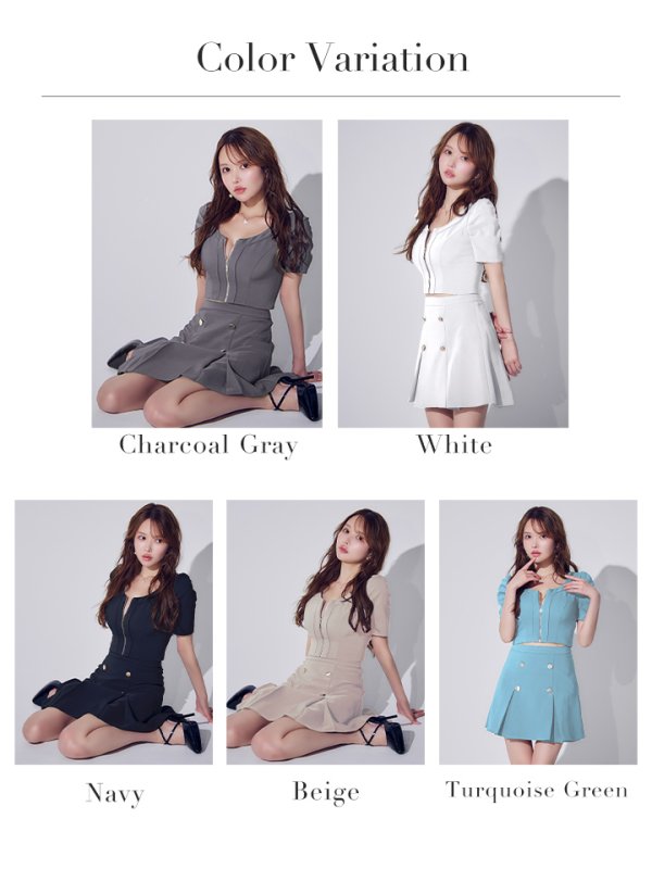 XSサイズあり【ANDY/アンディ】フロントジップ/ 半袖/ 袖あり/ ストレッチ/ ボックスプリーツ/ フレア/ セットアップ/ ミニドレス/ キャバドレス[OF05] [ON2844-CGY-S250711]