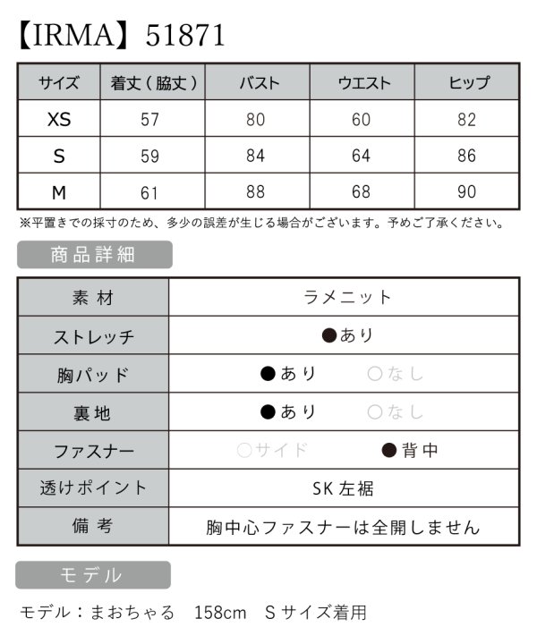 B:88 / W:68 / H:90 [着丈](脇下):約61cm |
