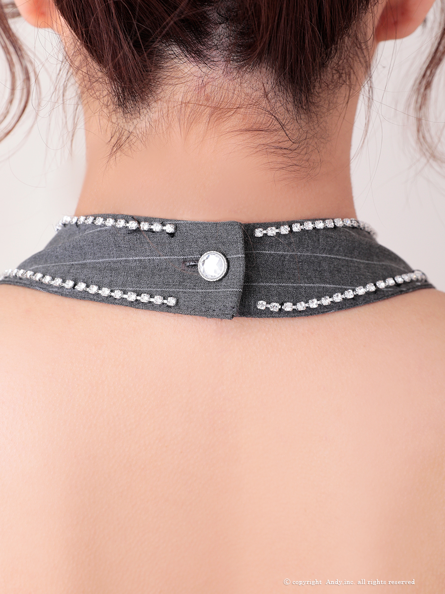 XSサイズあり【ANDY/アンディ】ハイネック/ ホルター/ ストライプ柄/ ノースリーブ/ バストジップ/ バックリボン/ フレア/ ミニドレス/ キャバドレス[OF05] [ON2933-GY-2507]