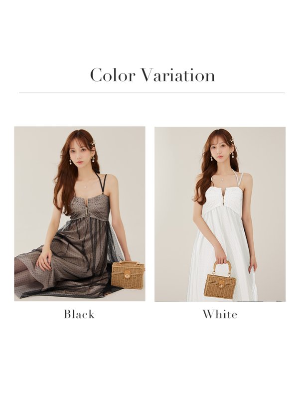 Lサイズあり【JEAN MACLEAN/ジャンマクレーン】ドットレース/ キャミソール/ フロントジップ/ フレア/ Aライン/ ミディアム丈/ ミモレ丈/ ミディアムドレス/ キャバドレス[OF2A] [55081-JM-W-S250715]
