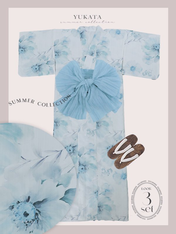 【即日発送】【NIGHTS掲載】ブルーグレイニュアンスフラワー浴衣【浴衣3点セット】[YMT] [Y-9111-nz-dzh-BL-F-25NS]