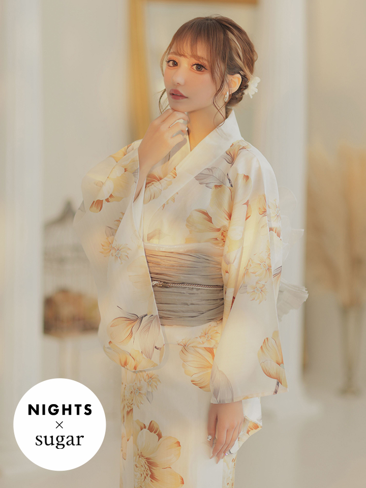 【即日発送】【NIGHTS掲載】グレイッシュイエロー牡丹浴衣【浴衣3点セット 浴衣/帯/下駄】[YMT]