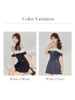XSサイズあり【an /アン】バイカラー/ オフショル/ キャミソール/ フロントジップ/ フレア/ ワンピース/ ミニドレス/ キャバドレス[OF05] [AOC3911-WxNV-S250722]