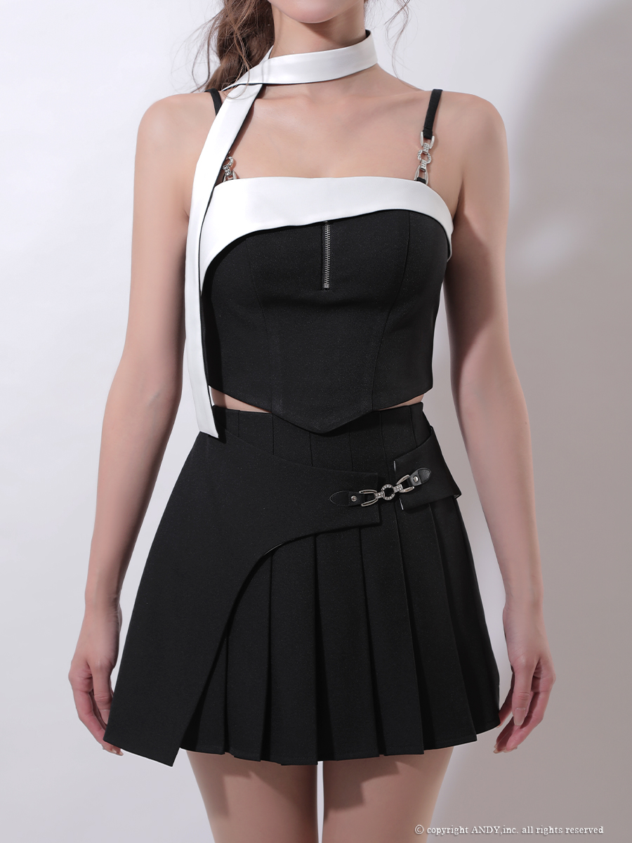 ショート丈トップスxプリーツミニスカートが360度完璧なシルエットを演出し、バストジップ開閉で谷間アピールも♡