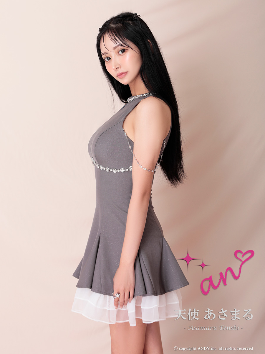 - > XSサイズあり【an /アン】ビジュー/ バストジップ/ チェーン/ アメスリ/ フリル/ バイカラー/ フレア/ ミニドレス/ キャバドレス[OF05]