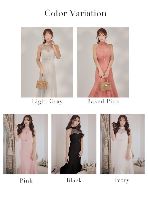透け感のあるホルターネックが大人っぽいロングドレス。