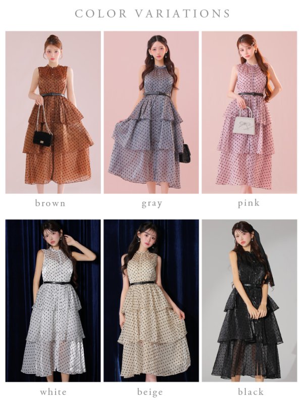 - > XS-Lサイズあり【ROBE de FLEURS/ローブドフルール】ベルト付き/ ドットオーガンジー/ ティアード/ フレア/ ミディアムドレス/ キャバドレス[OF08]