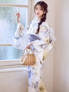 ホワイト牡丹が華麗で華やかさ溢れる女性らしいリッチな夏浴衣。