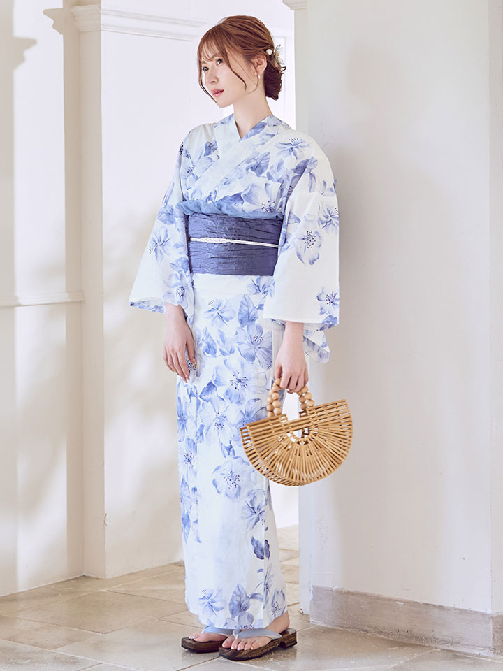 モダンフラワー大人エレガント浴衣【浴衣3点セット 浴衣/帯/下駄】[OF04] [Y-9202-kj-BL-F-25cc]