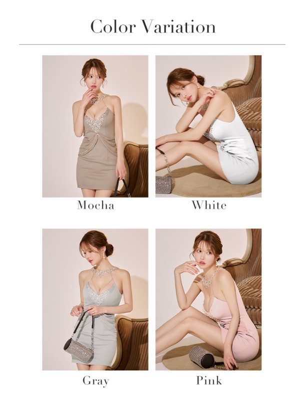 【ANGEL R/エンジェルアール】ホルターネック/ ビジュー/ シフォンドレープ/ パールチェーン/ タイト/ ミニドレス/ キャバドレス[OF2] [AR25230-P-S250728]