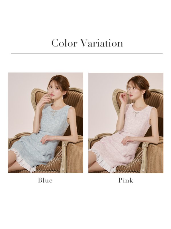XS-Lサイズあり 【GINZA COUTURE/銀座クチュール】ビジューブローチ/ ミックスツイード/ ノースリーブ/ 裾プリーツ/ フレア/ Aライン/ ワンピース/ ミニドレス/ キャバドレス[OF2] [LKC2822-P-S2507]