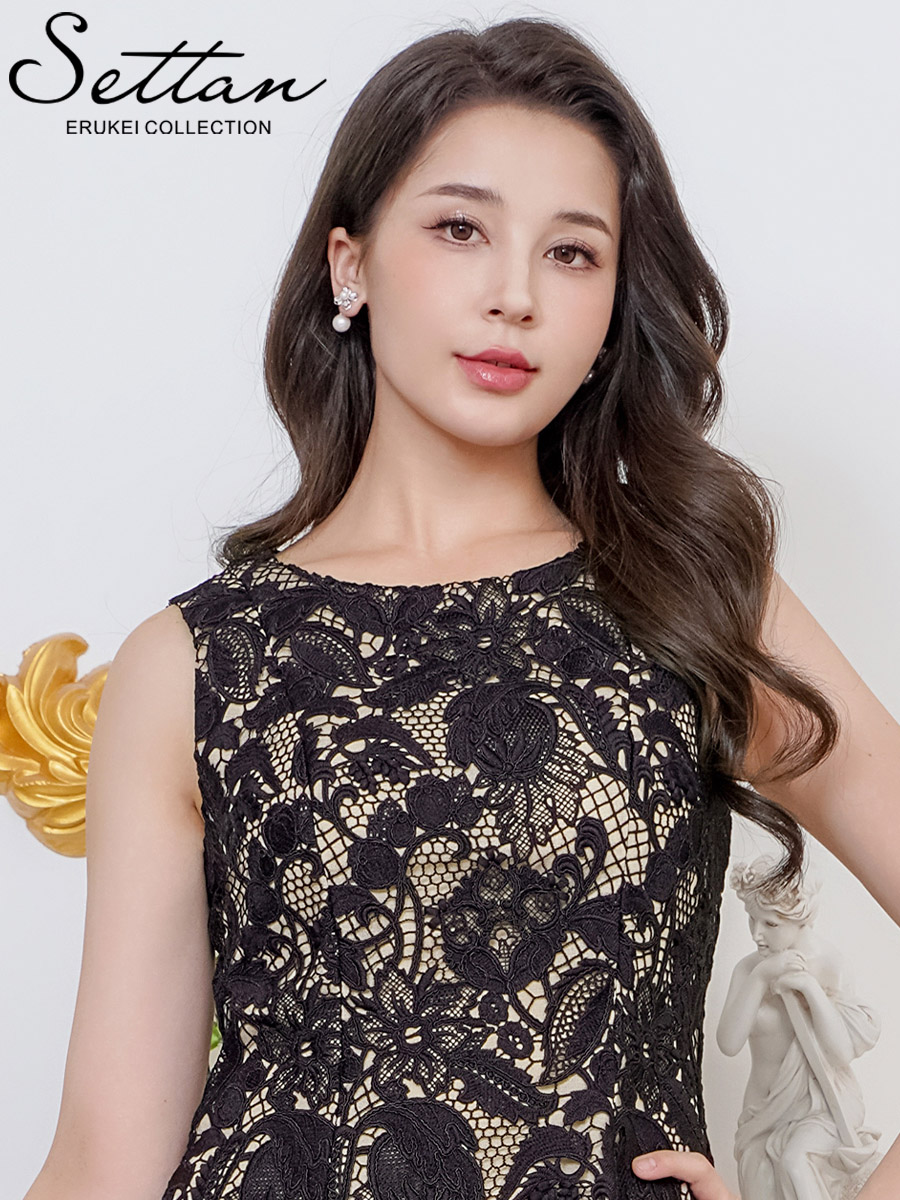 - > XS-Lサイズあり【SETTAN/セッタン】ケミカルレース/ ノースリーブ/ フレア/ Aライン/ 総レース/ ワンピース/ ミニドレス/ キャバドレス[OF2]