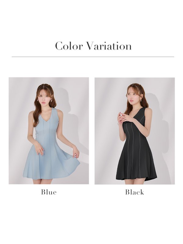 【Jessica/ジェシカ】シンプル/ ワンカラー/ Vネック/ ノースリーブ/ Aライン/ フレア/ ミニドレス/ キャバドレス【HC03】 [JS7718-BL-S2507]
