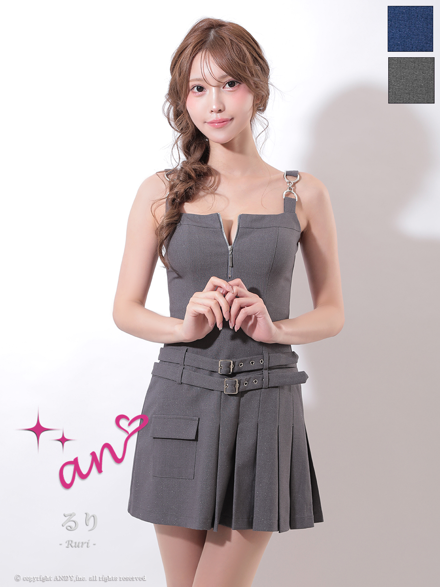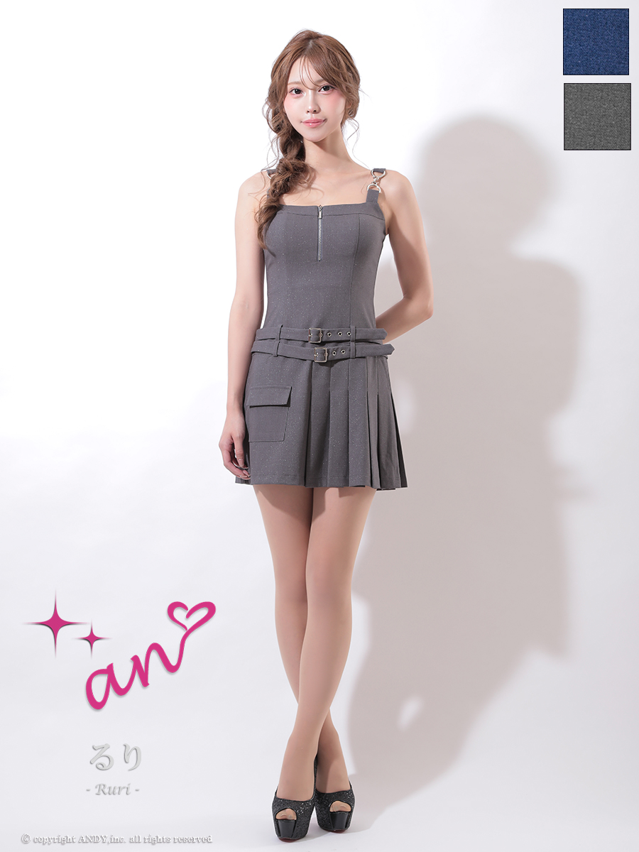 XSサイズあり【an/アン】フロントジップ/ ノースリーブ/ ダブルベルト/ アシンメトリー/ プリーツ/ ワンピース/ ミニドレス/ キャバドレス[OF05] [AOC3944-indigo-2507]