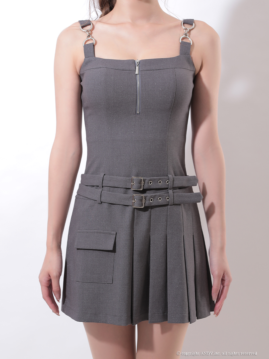 - > XSサイズあり【an/アン】フロントジップ/ ノースリーブ/ ダブルベルト/ アシンメトリー/ プリーツ/ ワンピース/ ミニドレス/ キャバドレス[OF05]