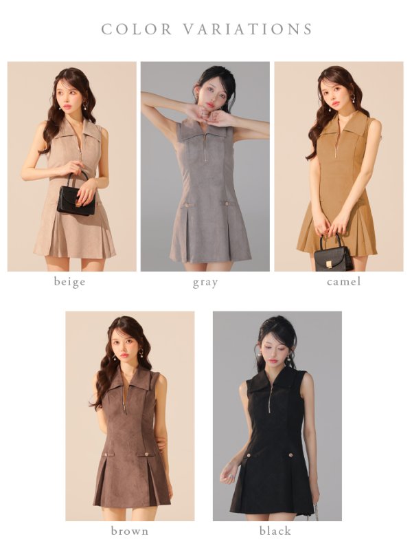 - > 【ゆうめろ/関西コレクション着用】XSサイズあり【DEA./ディア】スエード/ ジップ/ カラー/ フレア/ ワンピース/ ミニドレス/ キャバドレス[OF08]