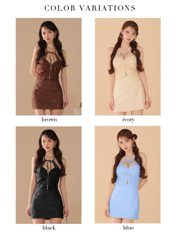 - > XSサイズあり【ROBE de FLEURS/ローブドフルール】ジャガード/ ホルター/ リボン/ セットアップ/ ミニドレス/ キャバドレス[OF08] 【一部予約商品/2月中旬発送予定】