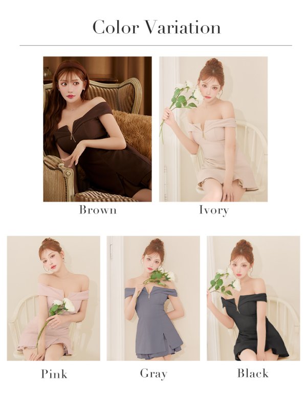 XSサイズあり【DEA./ディア】バストジップ/ オフショル/ セットアップ/ フレア/ ミニドレス/ キャバドレス[OF08]【一部予約商品/1月上旬発送予定】 [DE4217-BR-S250801]
