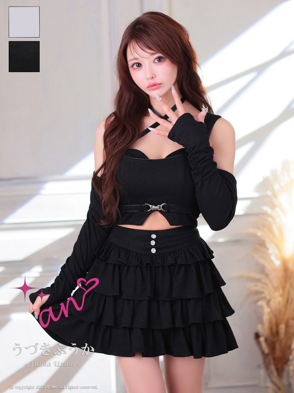 ティアードフリルスカートが乙女心くすぐる、ガーリーなセットアップミニドレス♡