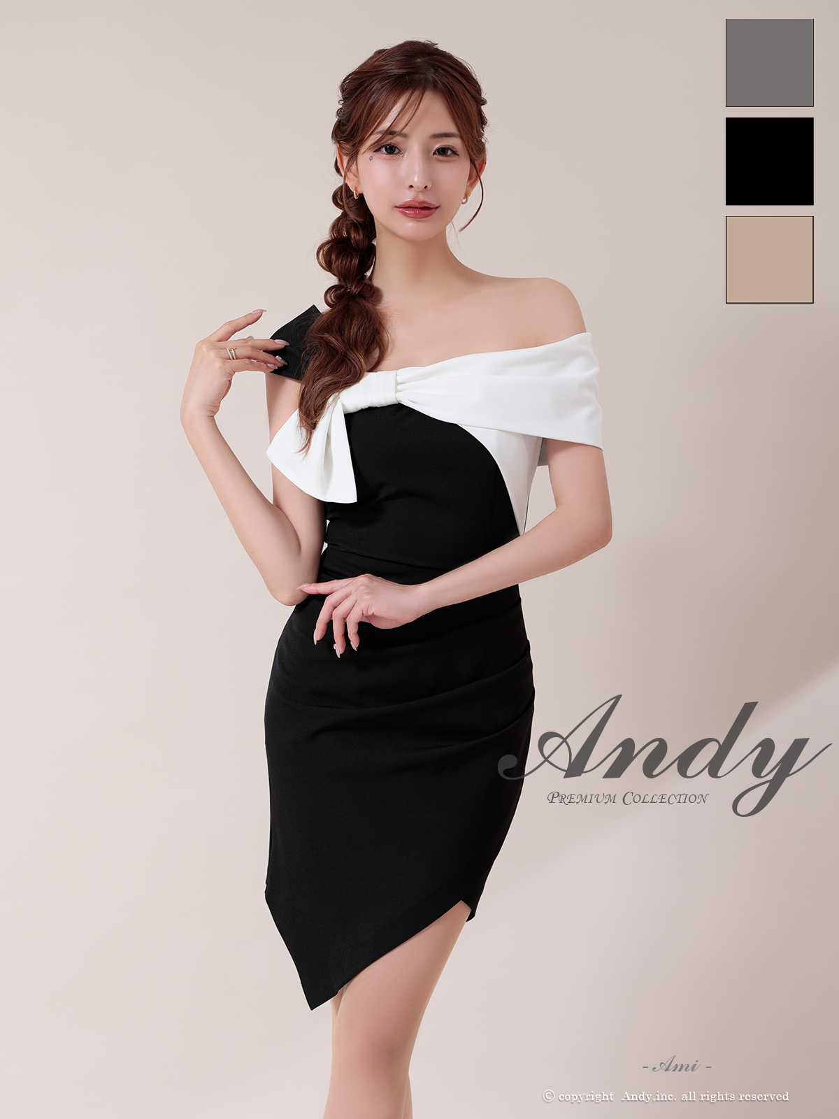 - > XSサイズあり【ANDY/アンディ】バイカラー/ ワンショル/ オフショル/ アシンメトリー/ タイト/ ミニドレス/ キャバドレス[OF05]