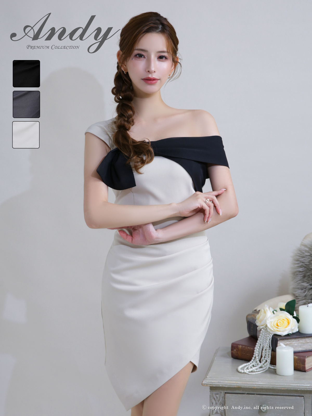 【ANDY/アンディ】リボンモチーフのオフショルデザインが目を惹くバイカラーミニドレス♡
