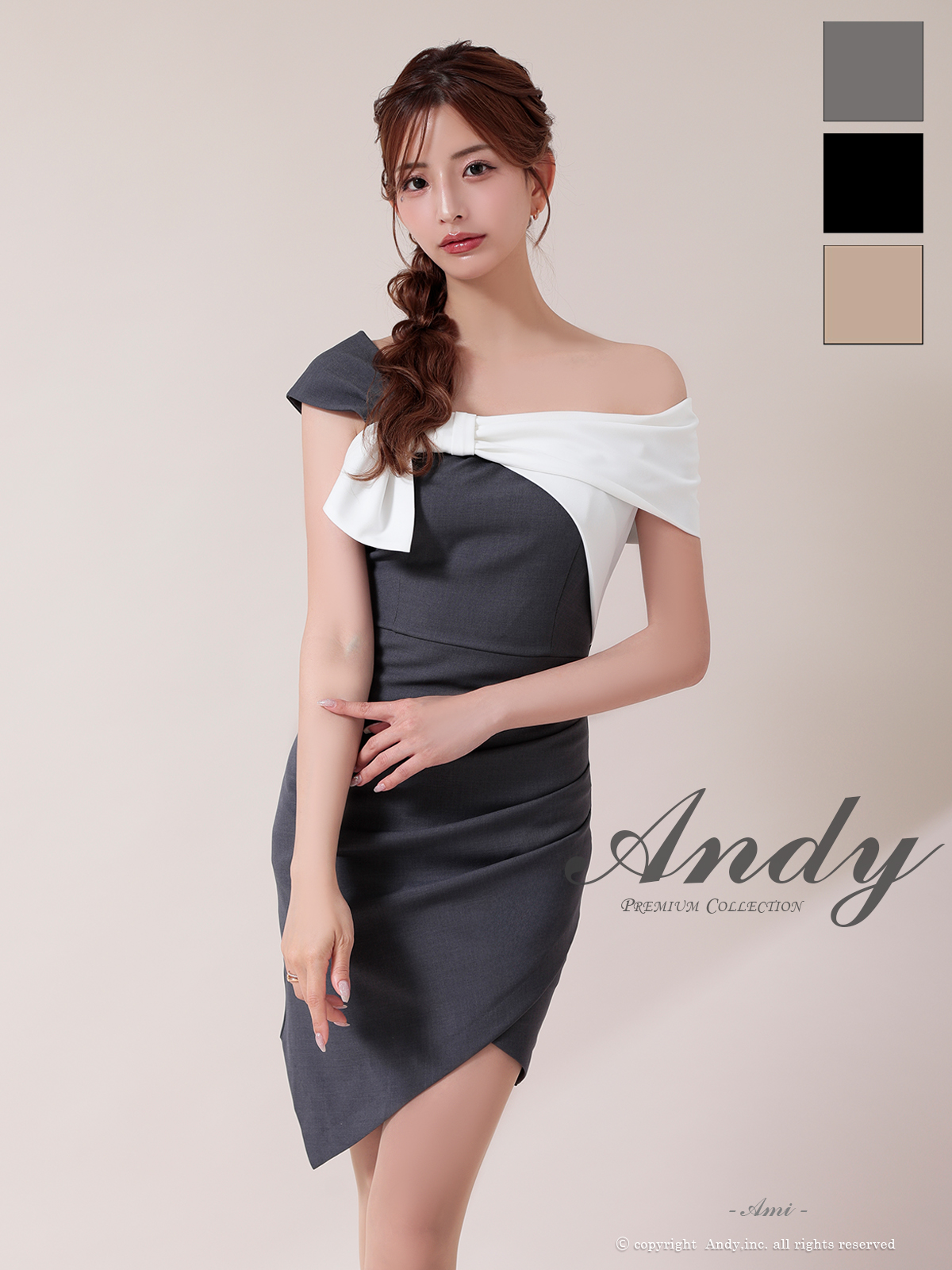 XSサイズあり【ANDY/アンディ】バイカラー/ ワンショル/ オフショル/ アシンメトリー/ タイト/ ミニドレス/ キャバドレス[OF05] [OK2965-GY-2508]