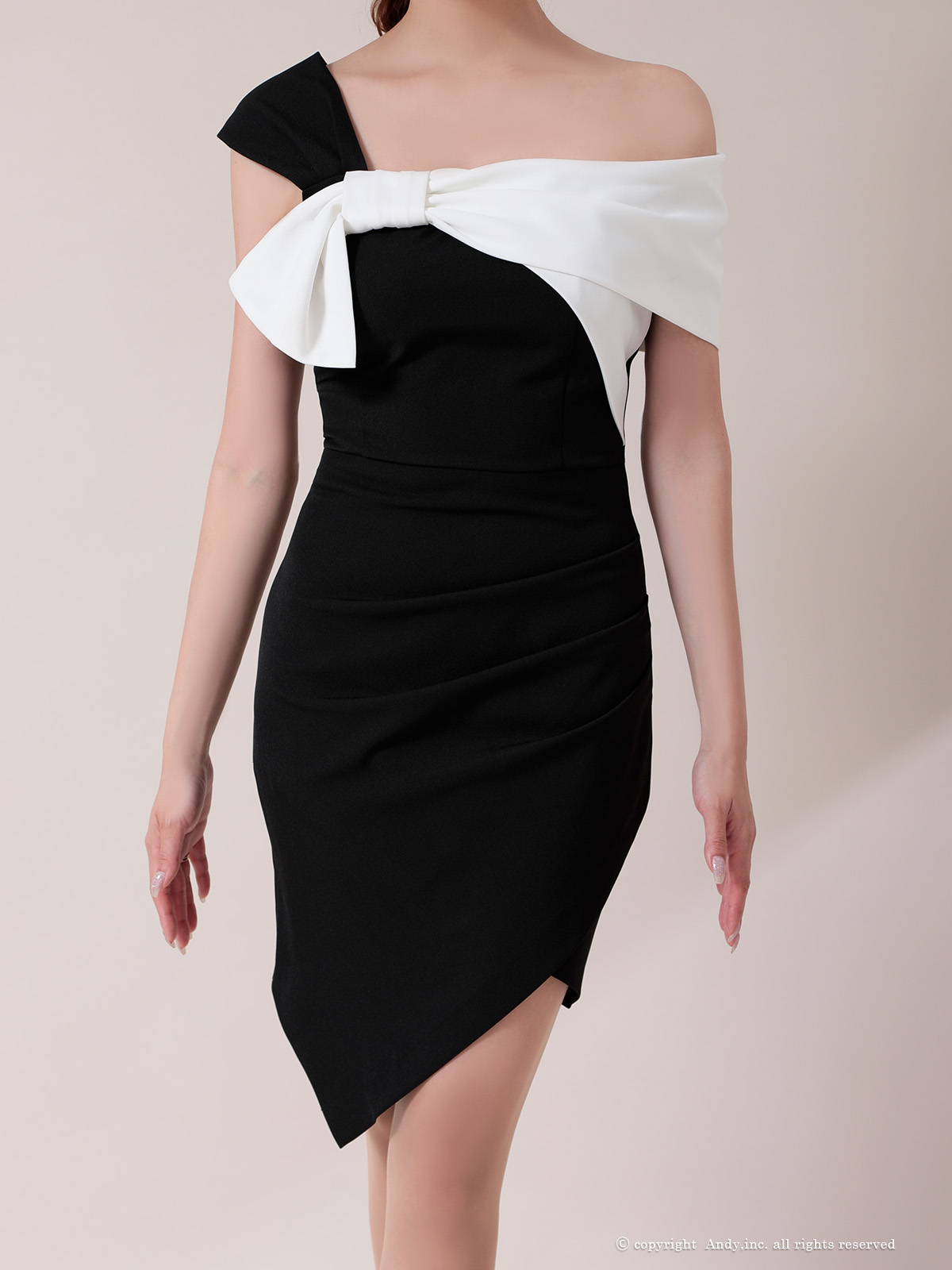 XSサイズあり【ANDY/アンディ】バイカラー/ ワンショル/ オフショル/ アシンメトリー/ タイト/ ミニドレス/ キャバドレス[OF05]