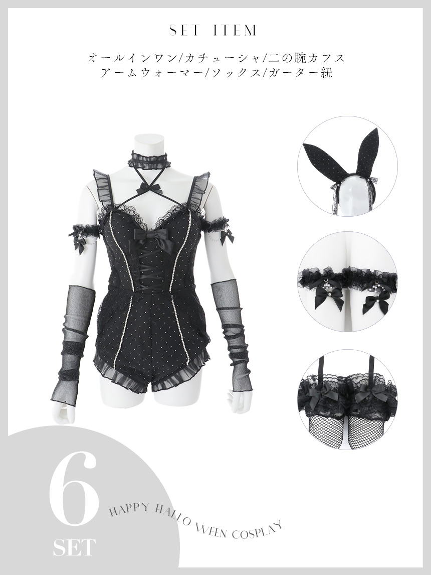 【即日発送】【送料無料!】【マリームーンコラボ】【ハロウィン】2wayハーネスネックバニー【コスプレ6点セット】【XS-Lサイズ/3カラー】[OF04]