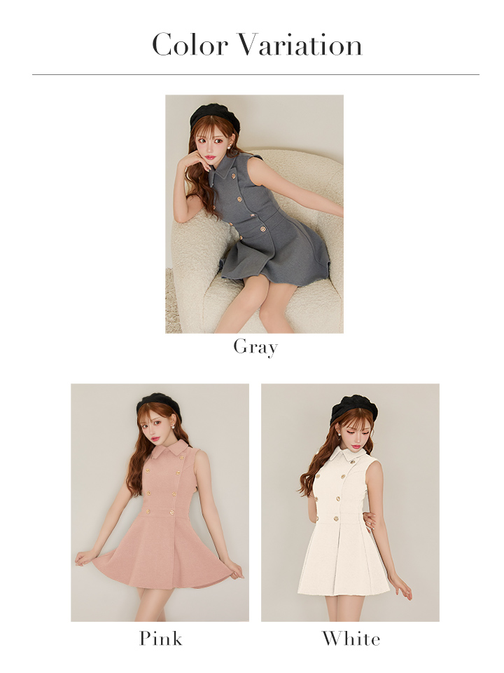 - > XSサイズあり【DEA./ディア】襟付き/ ノースリーブ/ ダブルボタン/ フレア/ Aライン/ ミニドレス/ キャバドレス[OF08]
