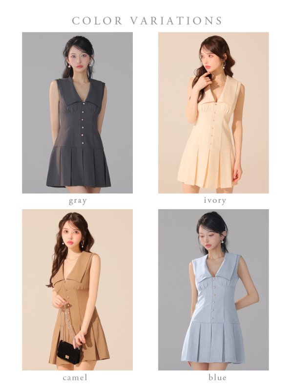 Lサイズあり【DEA./ディア】ビッグカラー/ ノースリーブ/ プリーツ/ フレア/ ミニドレス/ キャバドレス[OF08] [DE3395-GY-2508]