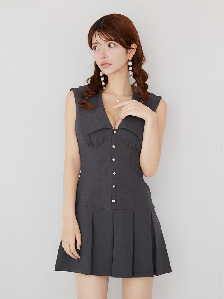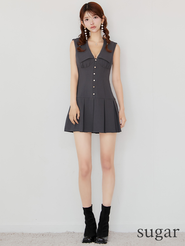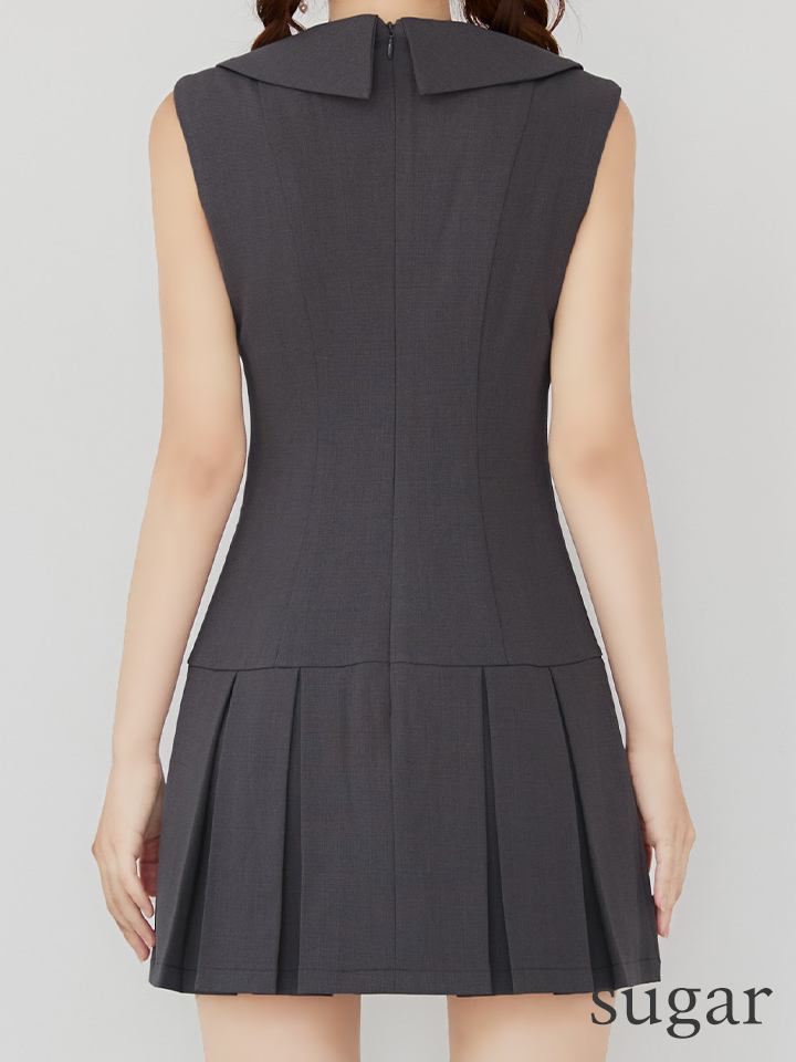 - > Lサイズあり【DEA./ディア】ビッグカラー/ ノースリーブ/ プリーツ/ フレア/ ミニドレス/ キャバドレス[OF08]
