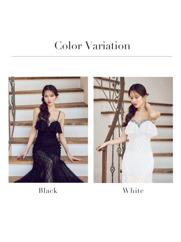 ビジュー×フリルの甘辛ディテールで華やかさ倍増なロングドレス♡