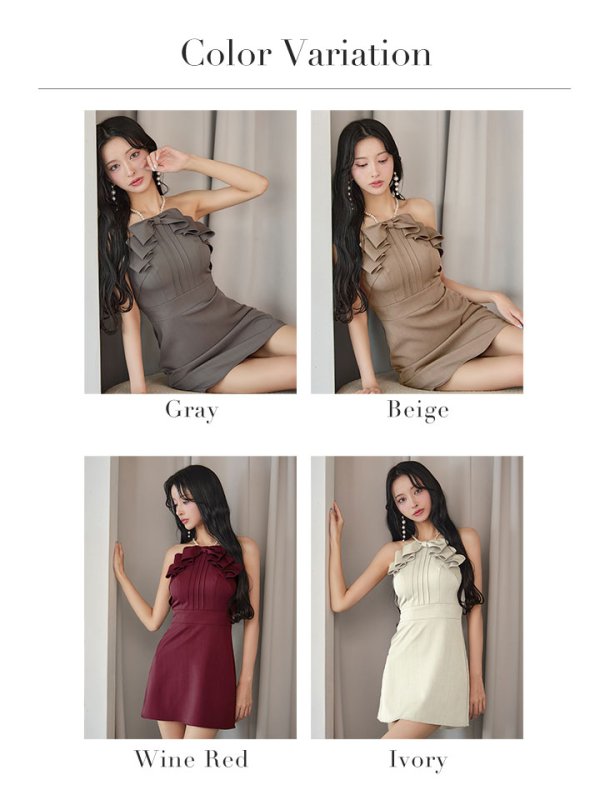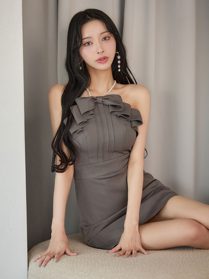 首元のリボンとフリルで可愛さを演出しつつ、大人の色気も漂わせるデザイン。