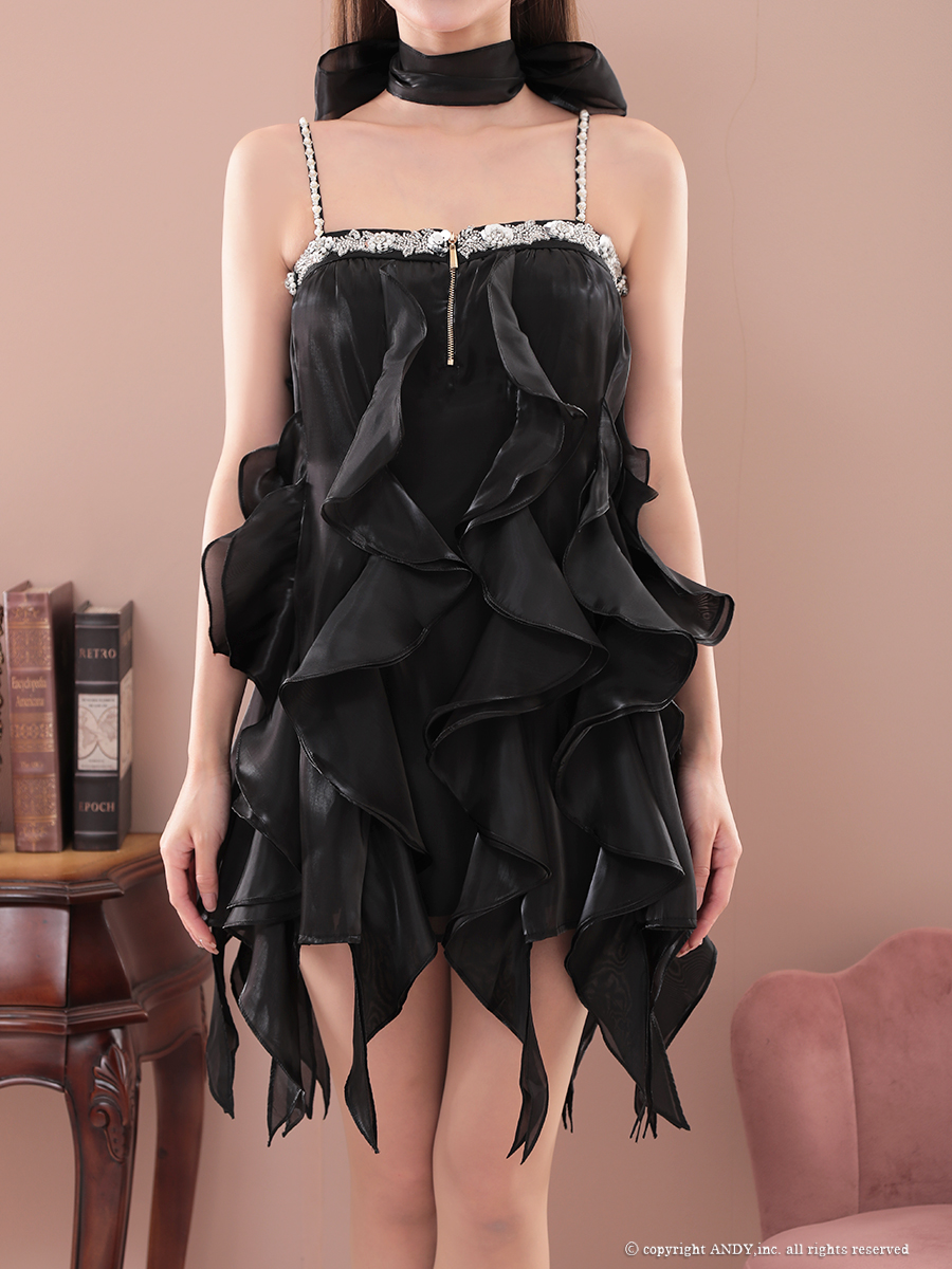 - > XSサイズあり【an/アン】ネックリボン付き/ ラッフルフリル/ ビジュー/ キャミソール/ バストジップ/ オーガンジー/ フレア/ ミニドレス/ キャバドレス[OF05]