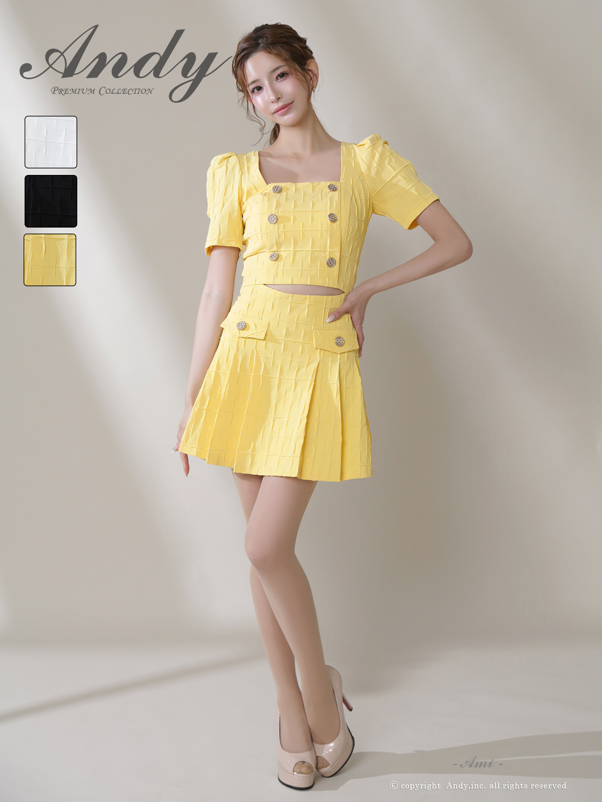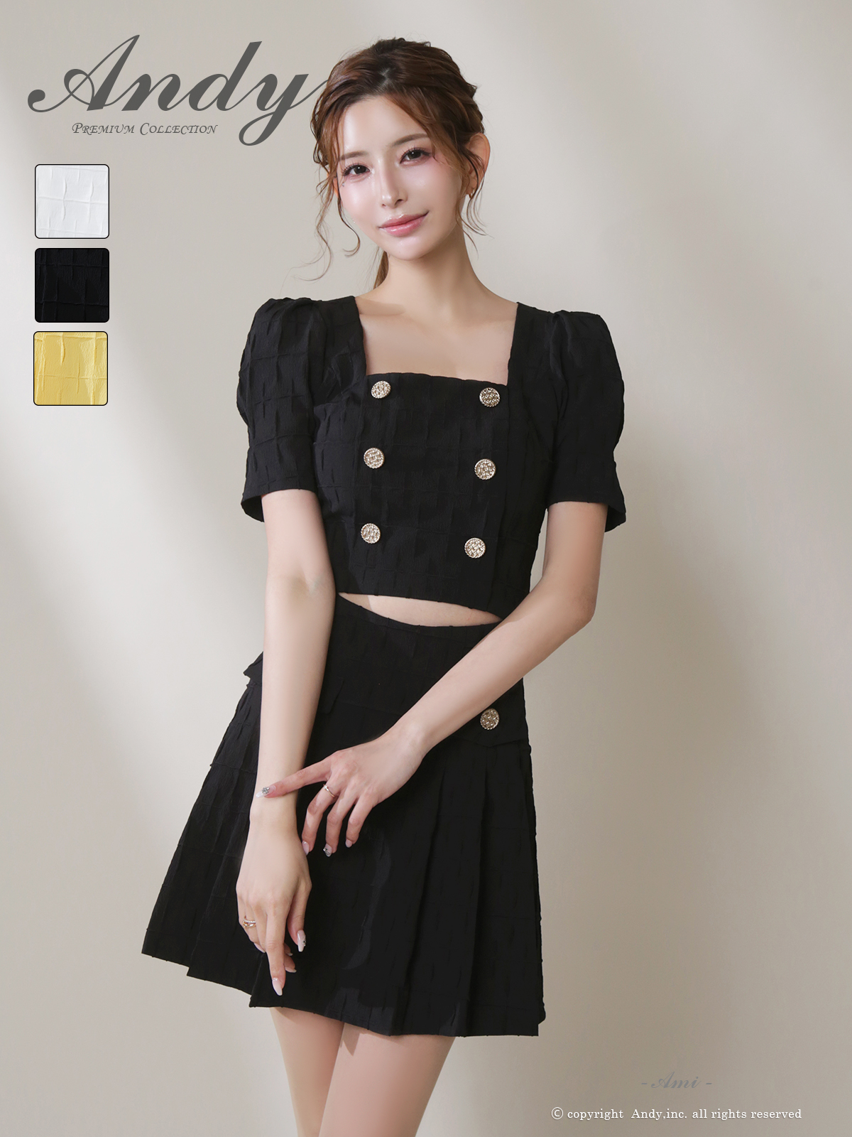 - > XSサイズあり【ANDY/アンディ】パワショル/ ウエストカットアウト/ ハーフスリーブ/ ジャガード/ プリーツ/ ミニドレス/ キャバドレス[OF05]