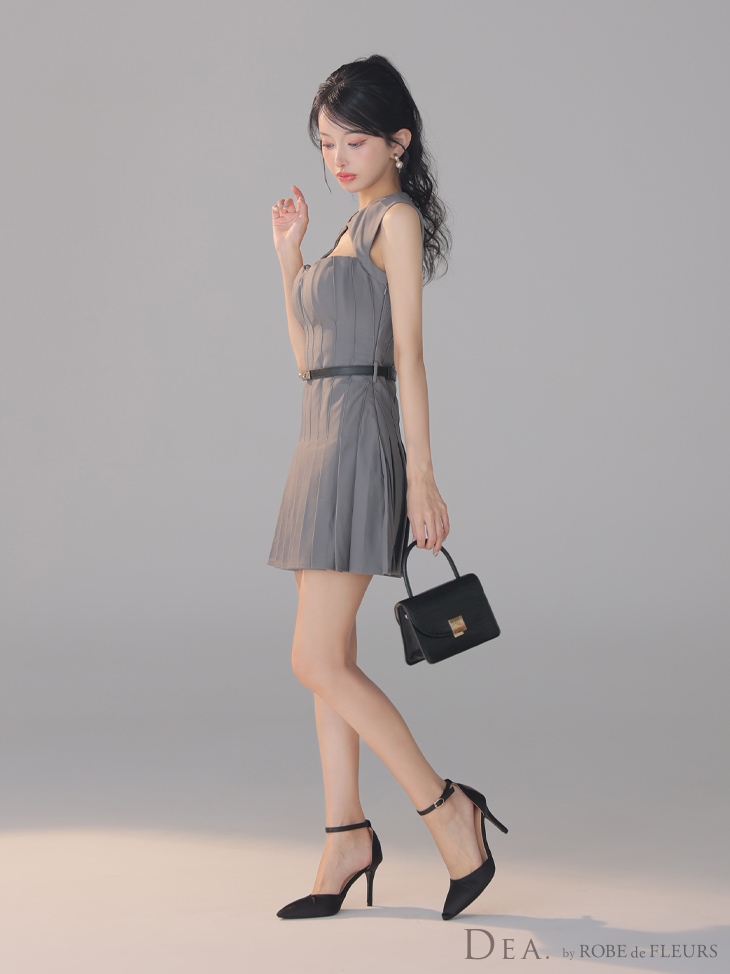 XSサイズあり【DEA./ディア】バストカット/ ベルト/ フィンプリーツ/ セミフレア/ ミニドレス/ キャバドレス[OF08] [DE3398-GY-S250818]