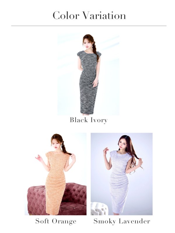 - > XLサイズあり【VANESSA HEART / ヴァネッサハート】【OF05】ミックスツイード/ フレンチスリーブ/ タック/ ストレッチ/ ひざ丈/ タイト/ ワンピース/ ミディアムドレス/ キャバドレス