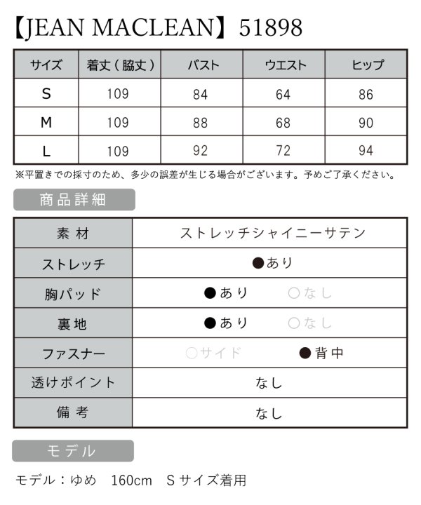※商品によって、ホック部分が金具に引っかけるタイプとドレス本体に引っかけるタイプがございます。【JEAN MACLEAN/ジャンマクレーン】