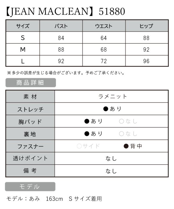 ※商品によって、ホック部分が金具に引っかけるタイプとドレス本体に引っかけるタイプがございます。【JEAN MACLEAN/ジャンマクレーン】