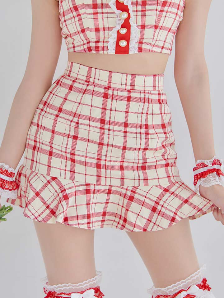 チェック れっど 赤 くろ 黒 セットアップ ツーピース 2ピース タイツ あざと 甘い スイート バニー うさぎ ウサギ 兎 アニマル 動物 あにまる カフス 病み 闇