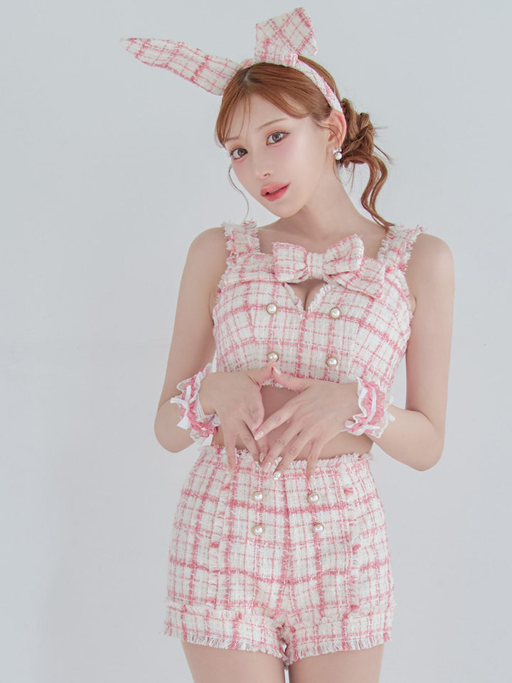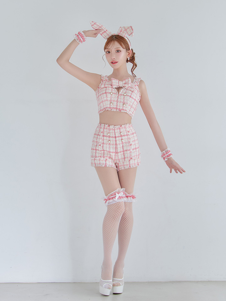【SALE!!】【即日発送】【ハロウィン】ツイードバニーリボンセットアップ(パンツ)【コスプレ6点セット】 【XS-Mサイズ/2カラー】[HC03]