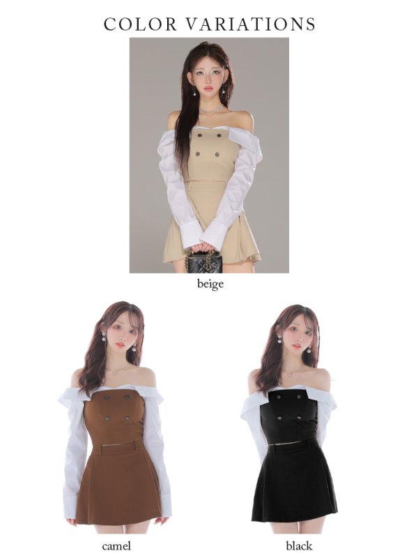 - > XSサイズあり【Glossy/グロッシー】シャツオフショルデザイン/ フロントボタン/ フレア/ セットアップ/ ミニドレス/ キャバドレス[OF08]